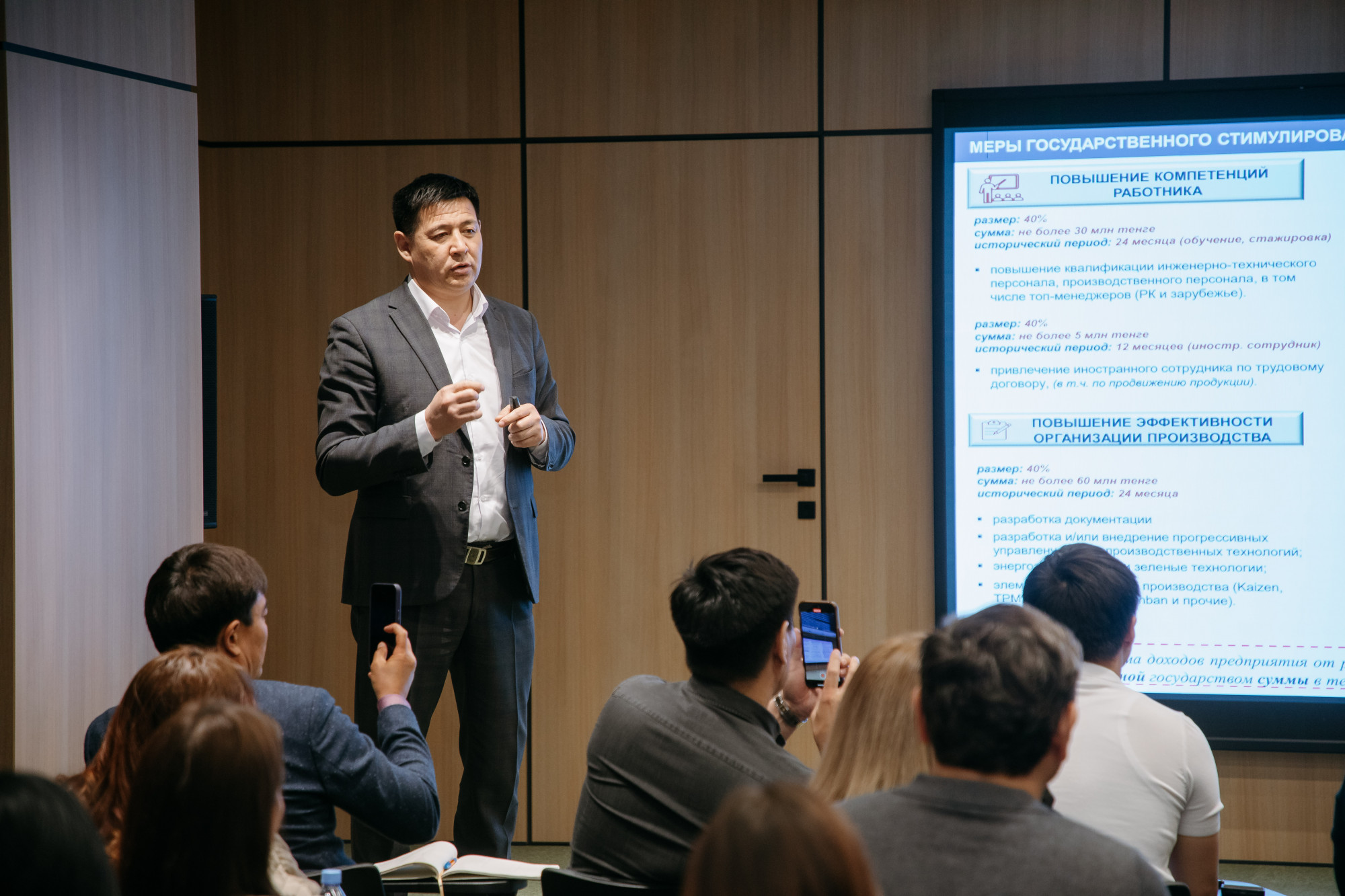 哈萨克斯坦出口信贷机构股份公司今日联合创业发展基金会“达穆”、QazTrade股份公司、QazIndustry股份公司、哈萨克斯坦投资公司股份公司、国家知识产权研究所“Qazpatent”、共和国家企事业单位“哈萨克斯坦标准化与计量研究院”,以及在全国企业家商会“Atameken”的支持下,为国际KIT协会会员企业家举办了一场信息研讨会。